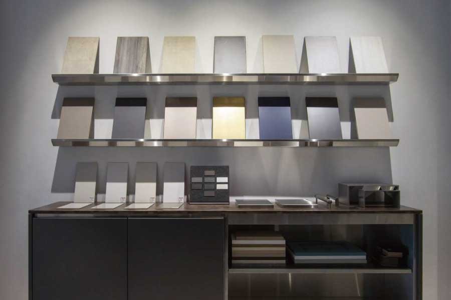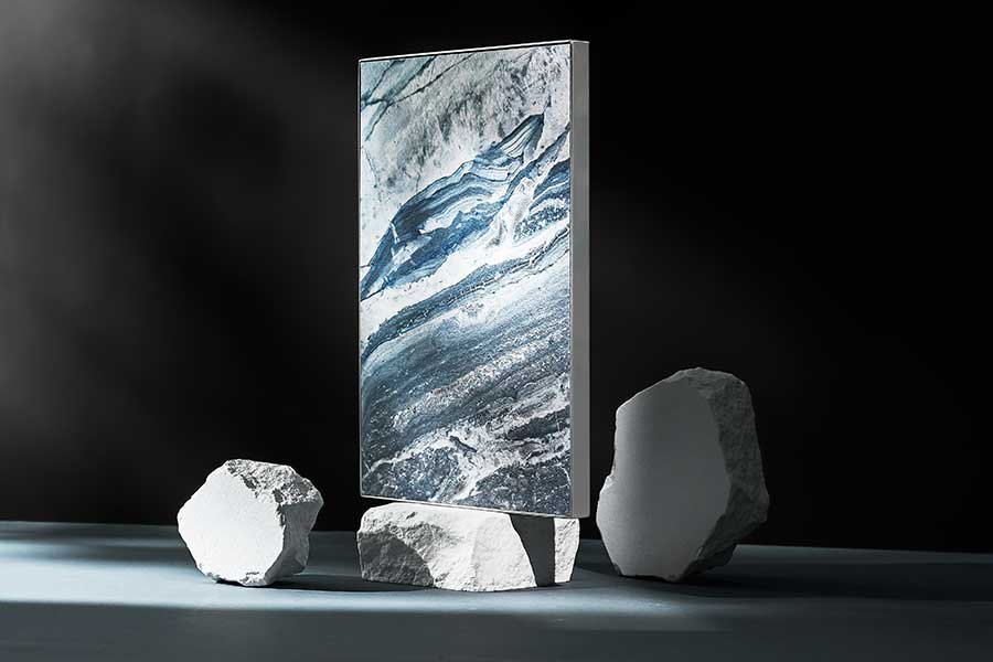 嵌入式藝術門板由不同色系的板料搭配不鏽鋼框組成,並且可以做到連續紋理不間斷,讓整體視覺效果更佳的衝擊且美觀。